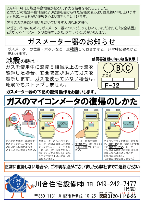皆さんご存じですか?ガスメーターの復帰操作方法