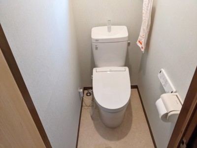 壁や床のクッションフロアは既存のトイレと変わらない雰囲気になりました。